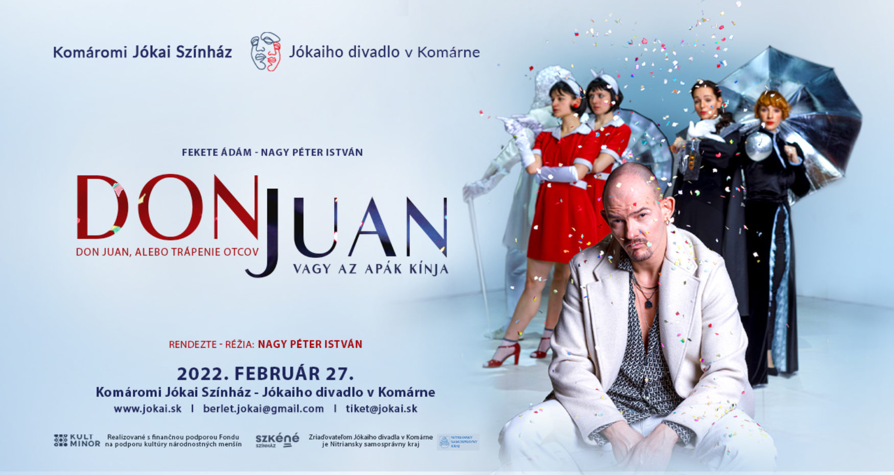 A Komáromi Jókai Színház és a budapesti Szkéné közös vállalkozásában Nagy Péter István rendező és Fekete Ádám dramaturg kísérletet tesznek arra, hogy megfogalmazzák a Don Juan sztori 21. századi olvasatát. Az örök csábító mítosza európai kultúrtörténetünk meghatározó legendája, melyet sokan sokszor fogalmaztak újra.Figurája évszázadok óta foglalkoztatja az írókat, zenészeket, költőket, filozófusokat. Vajon mi a titka Don Juannak? Miért tér vissza folyton a művészeti alkotásokban, miért bukkan fel újra és újra kalandos történeteivel? A donjuanizmus lényege, hogy az élet elmúlásával az élet élvezetét állítja szembe. Don Juan minden nőt szeret, anélkül az illúzió nélkül, hogy a szerelem – bármely szerelem – örökké tartana. Igaz szerelmet ad és igaz szerelmet kap, csak épp szerelme tárgya változik időről-időre.