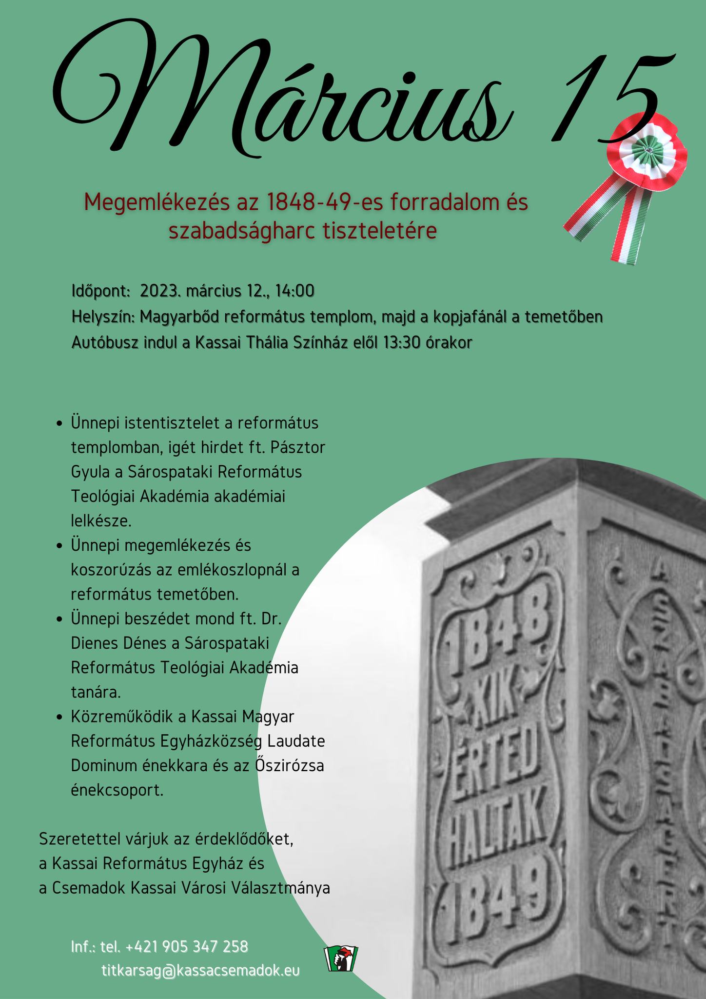 Szeretettel hívjuk az érdeklődőket hagyományos magyarbődi megemlékezésünkre a 48-49-es szabadságharc tiszteletére.