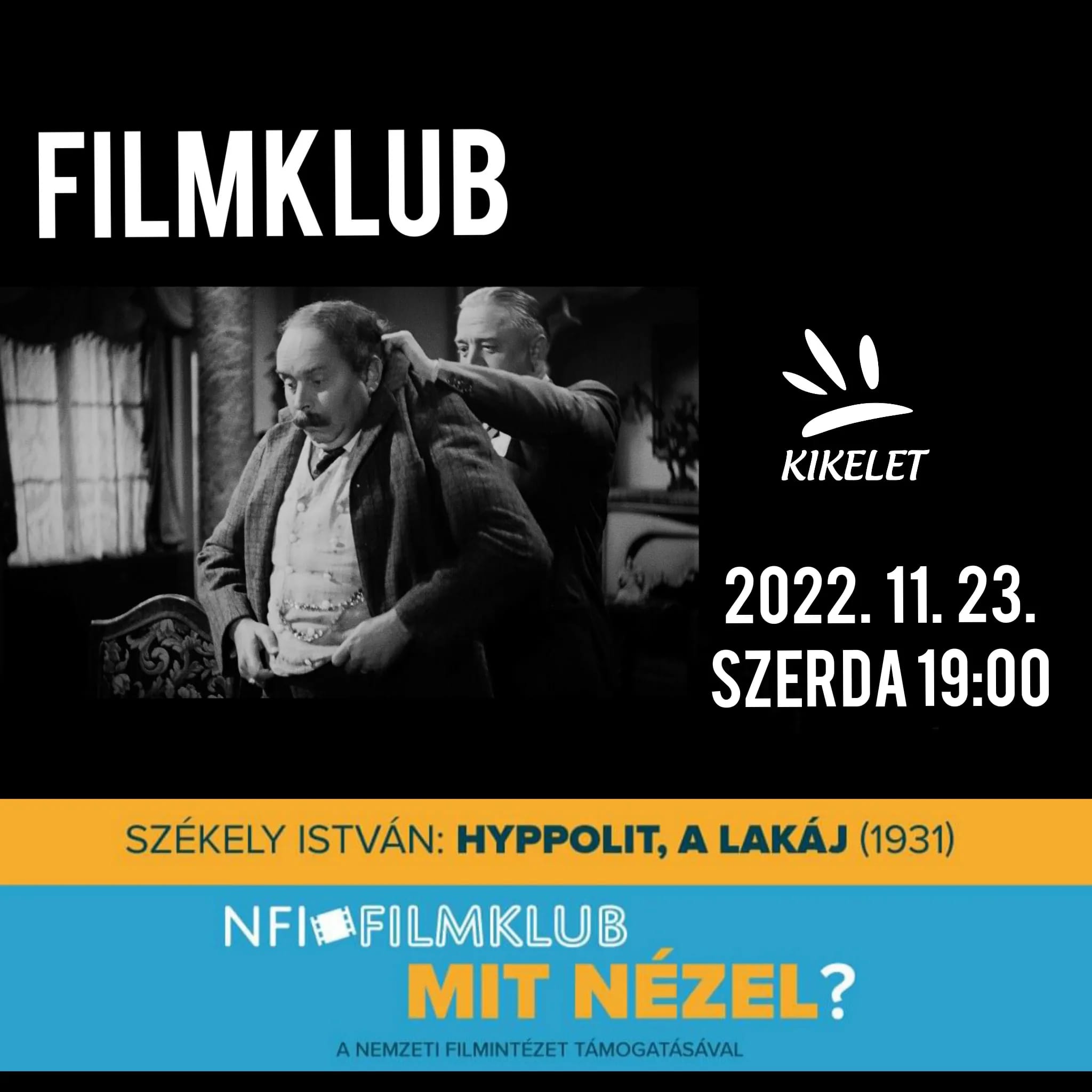 Székely István: Hyppolit, a lakáj című filmet fogjuk vetíteni, a Nemzeti Filmintézet támogatásával.